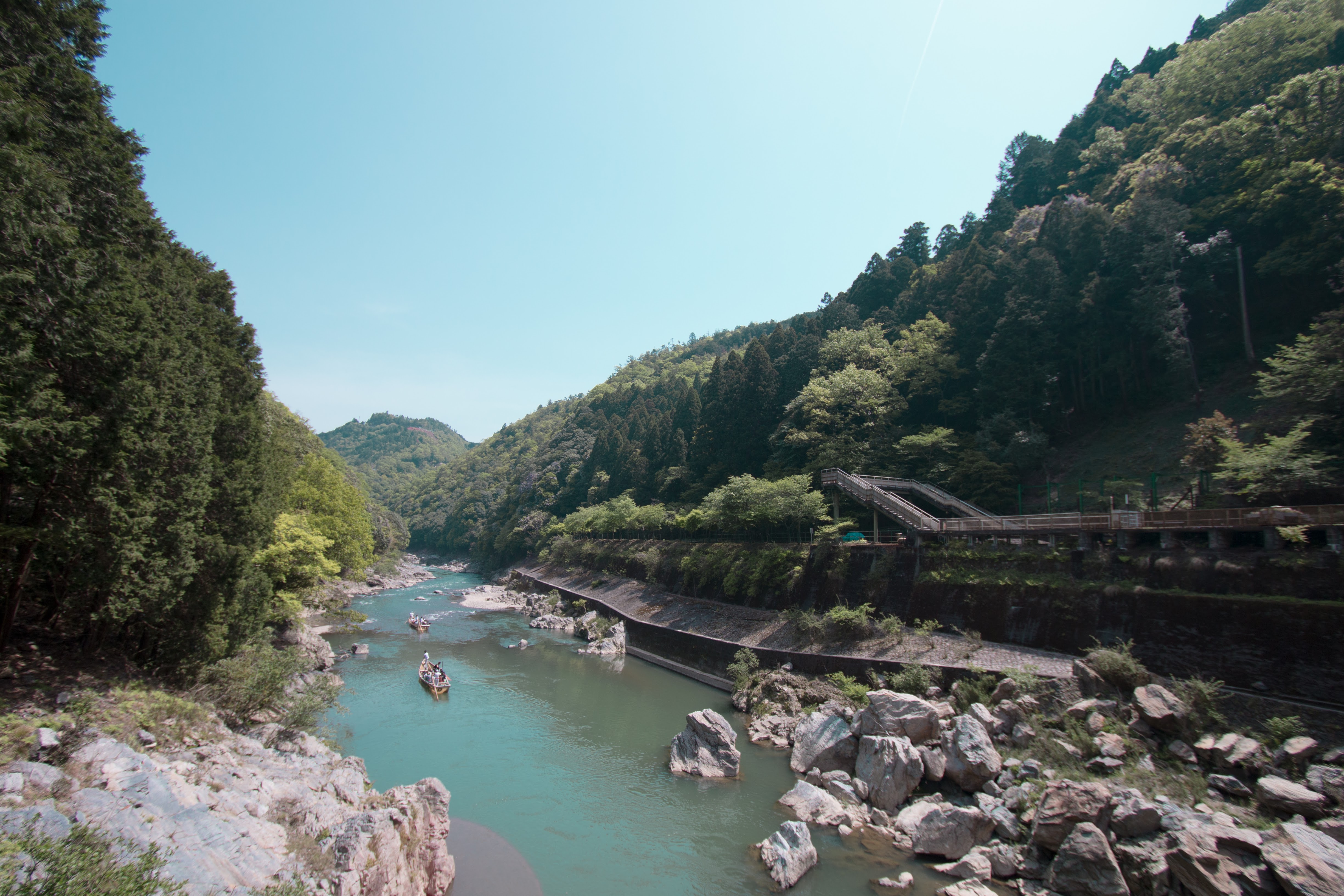 サンガスタジアムでのサッカー観戦や、保津川下り、トロッコ列車、出雲大神宮での参拝などでの